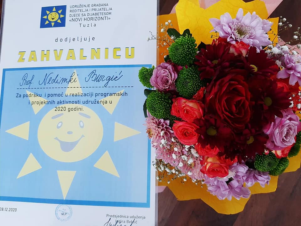 Za podršku i pomoć realizaciji programskih i projektnih aktivnosti Udruženja u 2020 godini dodjeljene su zahvalnice Sabini Imamović, prof. Nedimki Burgić i Frizerski salon "4A" vl. Aljić Amela.